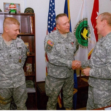 From June 2006 until June 2007, Chaplain Jenkins served as the Command Chaplain for the Multi-National Security Transition Command-Iraq, on General Martin Dempsey’s staff. General Dempsey would later serve as the 18th Chairman of the Joint Chiefs of Staff. At the end of his Iraq tour, General Dempsey presented Chaplain Jenkins the Bronze Star Medal. The Medal citation included the following: “IN ADDITION TO PROVIDING ECUMENICAL SERVICES TO PERSONNEL IN THE INTERNATIONAL ZONE, HE PUT HIMSELF IN HARM’S WAY WITHOUT HESITATION BY TRAVELING THROUGHOUT SOME OF THE MORE DANGEROUS REGIONS IN IRAQ TO ATTEND TO THE NEEDS OF SERVICE MEMBERS LOCATED IN BASE CAMPS AND FORWARD OPERATING BASES.”